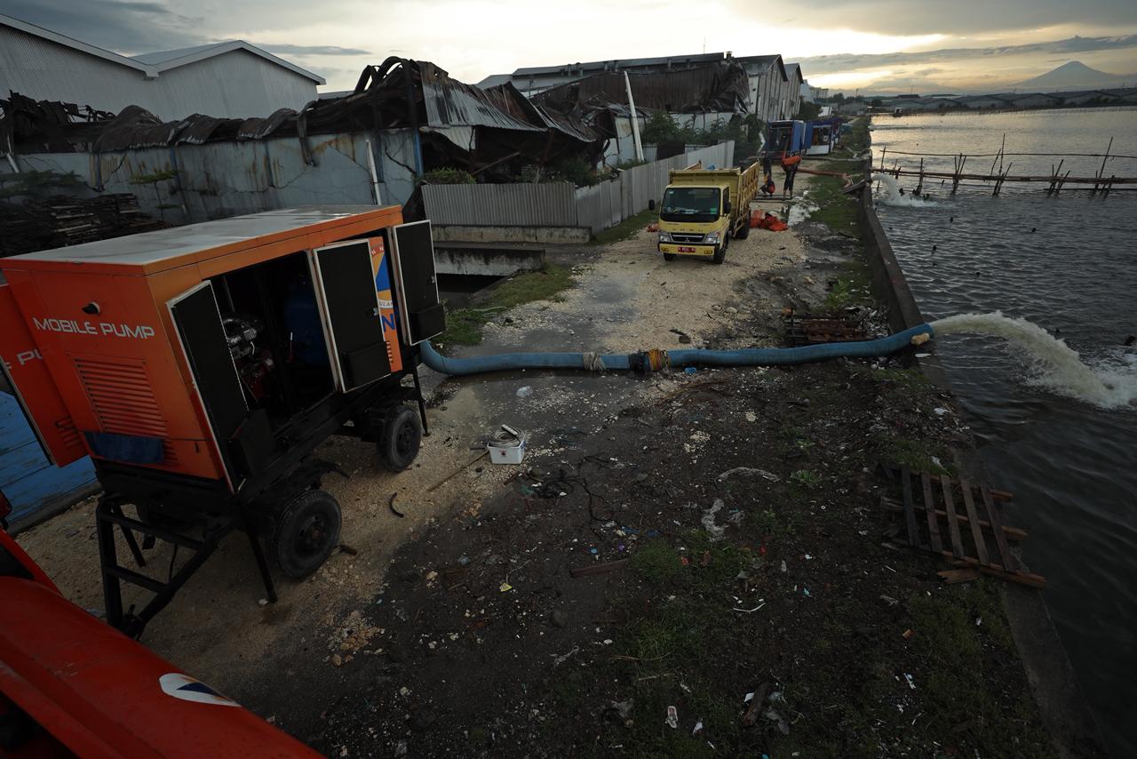 BNPB juga mendorong pemasangan pompa tambahan untuk mempercepat pengaliran air dari kolam retensi.