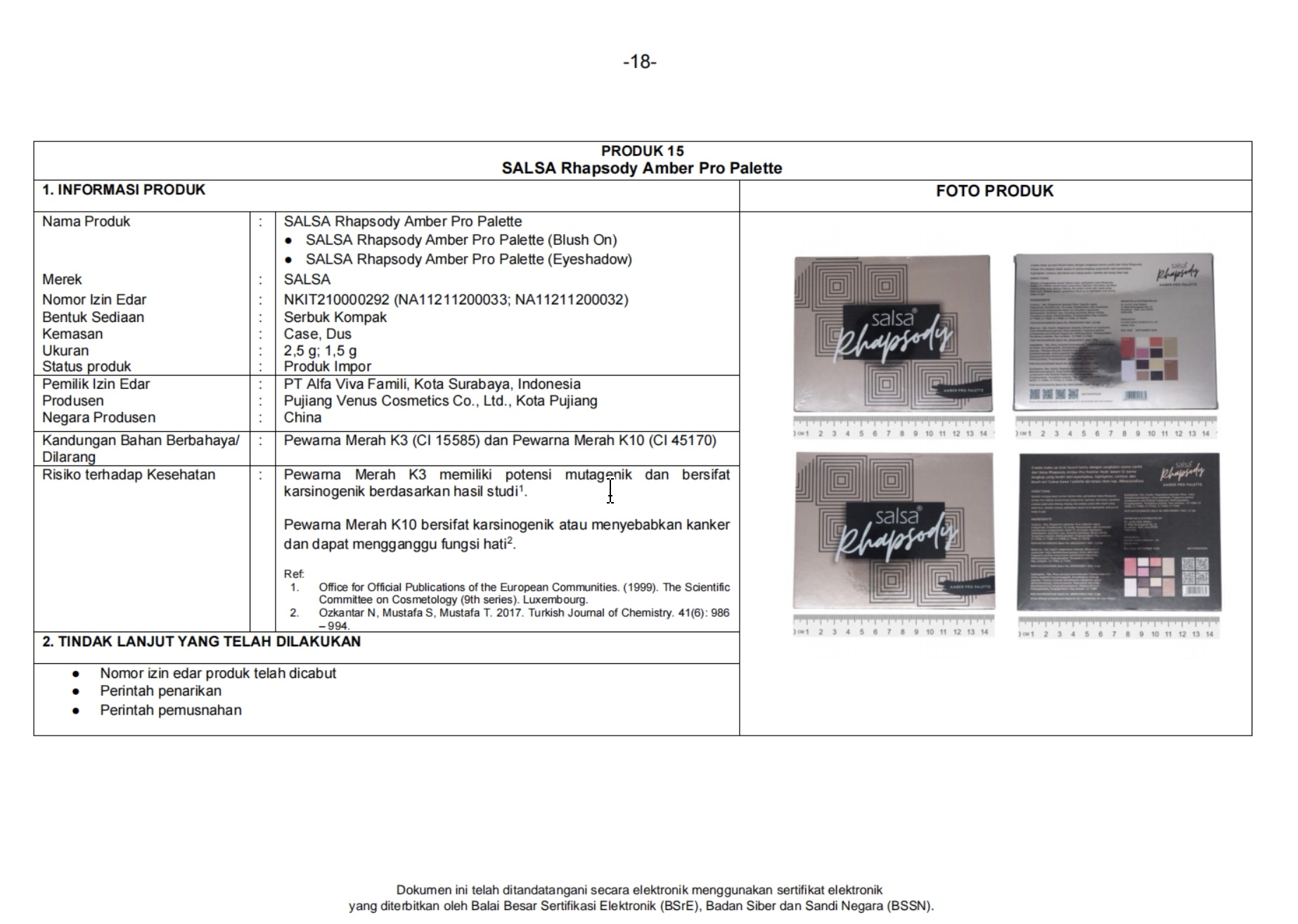 Selain penindakan administratif, BPOM juga memerintahkan pelaku usaha untuk menarik dan memusnahkan produk yang mengandung bahan berbahaya dari pasaran.