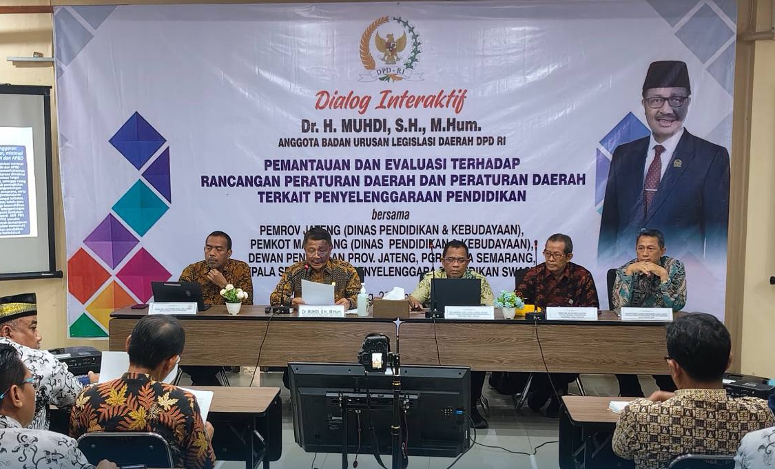 Kegiatan yang digelar di Kantor DPD RI Provinsi Jawa Tengah, Jalan Imam Bonjol, Semarang pada Kamis (26/2/2026) menghadirkan Anggota DPD RI Dapil Jateng Muhdi, bersama Dinas Pendidikan dan Kebudayaan Provinsi Jawa Tengah, perwakilan kabupaten/kota, Dewan Pendidikan, serta PGRI.