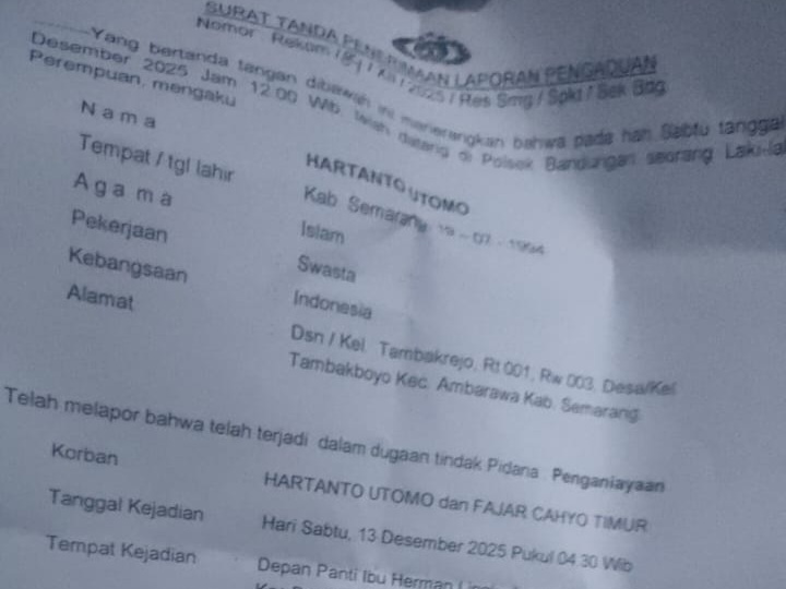 Peristiwa ini telah dilaporkan secara resmi ke Polsek Bandungan pada hari yang sama dengan kejadian.