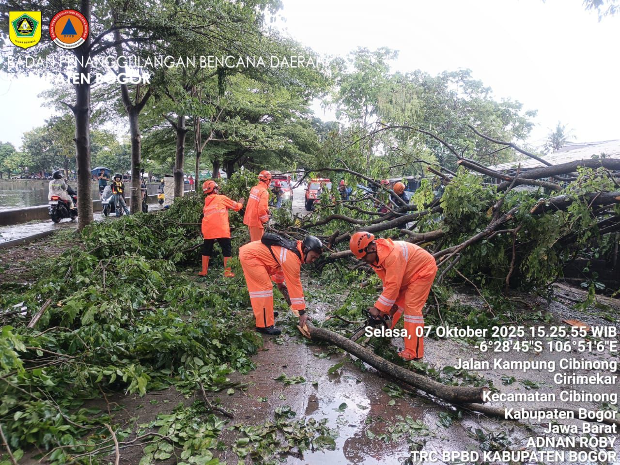 BNPB juga memperbarui informasi terkait angin kencang di Bogor dan robohnya mushala di Sidoarjo.