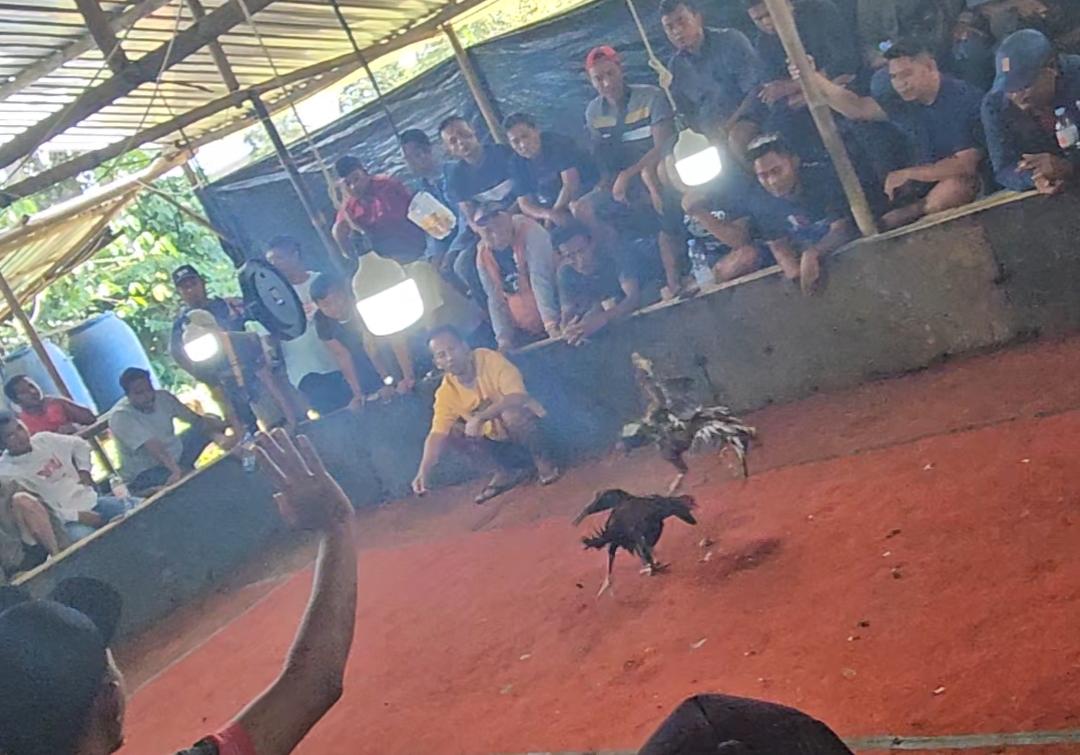 Dari luar, lokasi tersebut tampak tertutup, namun di dalamnya diduga dipenuhi sejumlah orang serta ayam yang digunakan untuk sabung.